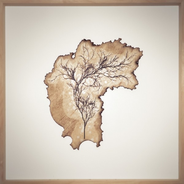 Those computer graphics are then laser etched on thin birch sheets, taking them far away from the digital imaginary but closer to something as natural as leafs.