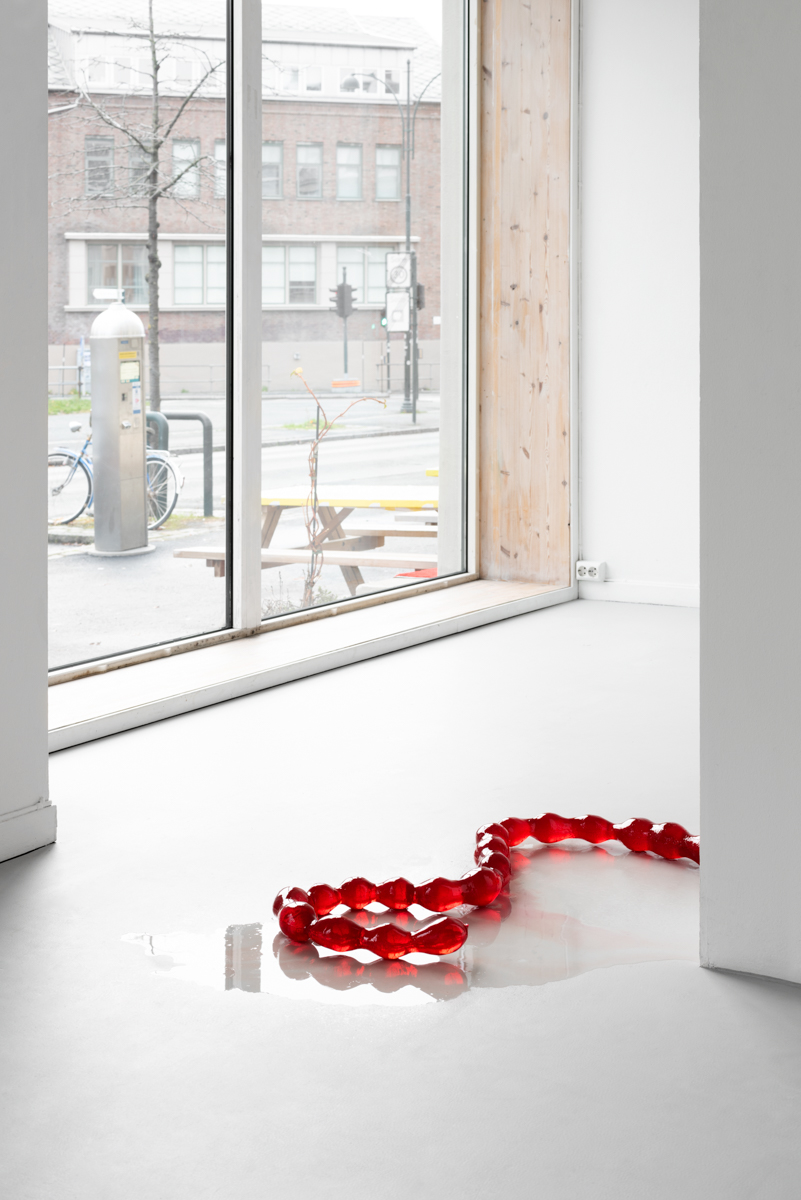 Vilde Løwenborg Blom (b. 1991, Oslo) holds an MFA from Bergen Academy of Art and Design and a BFA from Trondheim Academy of Fine Art. For a longer period of time, Blom has worked with hard candy as a material for sculptural and performative work, and is particularly interested in the transience of the material. The choice of material has its roots in a fascination for manual and industrial production of food. Blom has previously shown works at Oslo Performance Festival (2018), the group exhibition PINK at QB gallery (2018) and Høstutstillingen, Kunstnernes hus (2017).