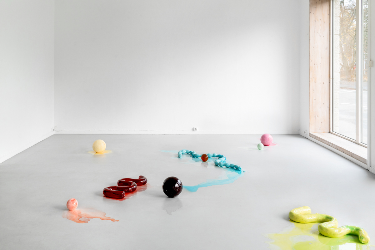 Silicon molds twist and bend, reminiscent of inner shapes, of intestines, intimate inside parts that are hollow. These shapes are intuitive and their creation is a sort of absence of something that is then filled – an act of making the body manifest. Vilde L. Blom primarily works with candy as material, using the scent, composition, and culture of candy to explore our relations to it over time and space. “How do we know what’s hidden? How do we meet it?” Blom asks.