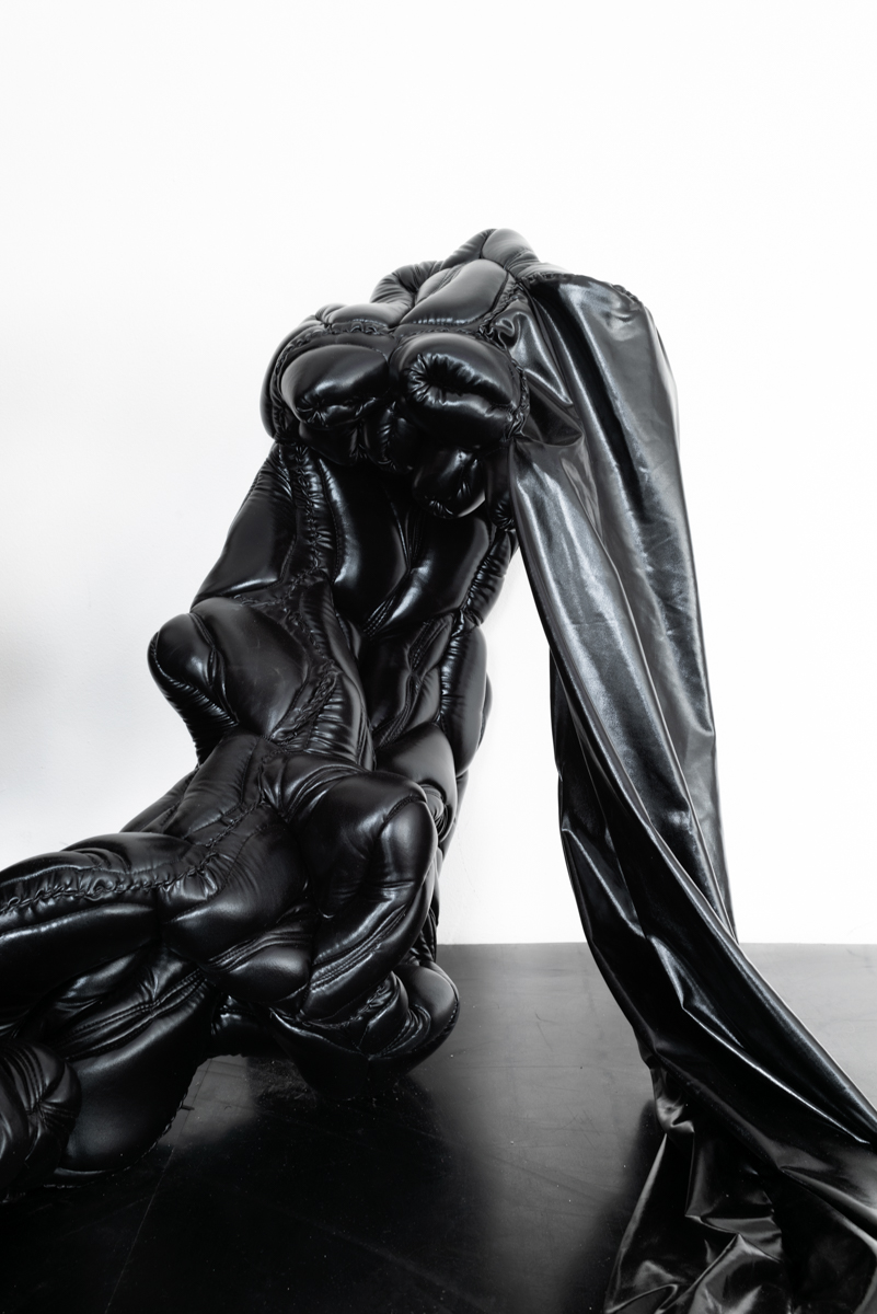 I DINE ARMER provides a wholly bodily experience, where the sculpture defines the movement of the viewer and the smell of rubber enhances the intrusiveness of the work. Babel visningsrom for kunst looks forward to opening I DINE ARMER – an exhibition, a work and an inner state.