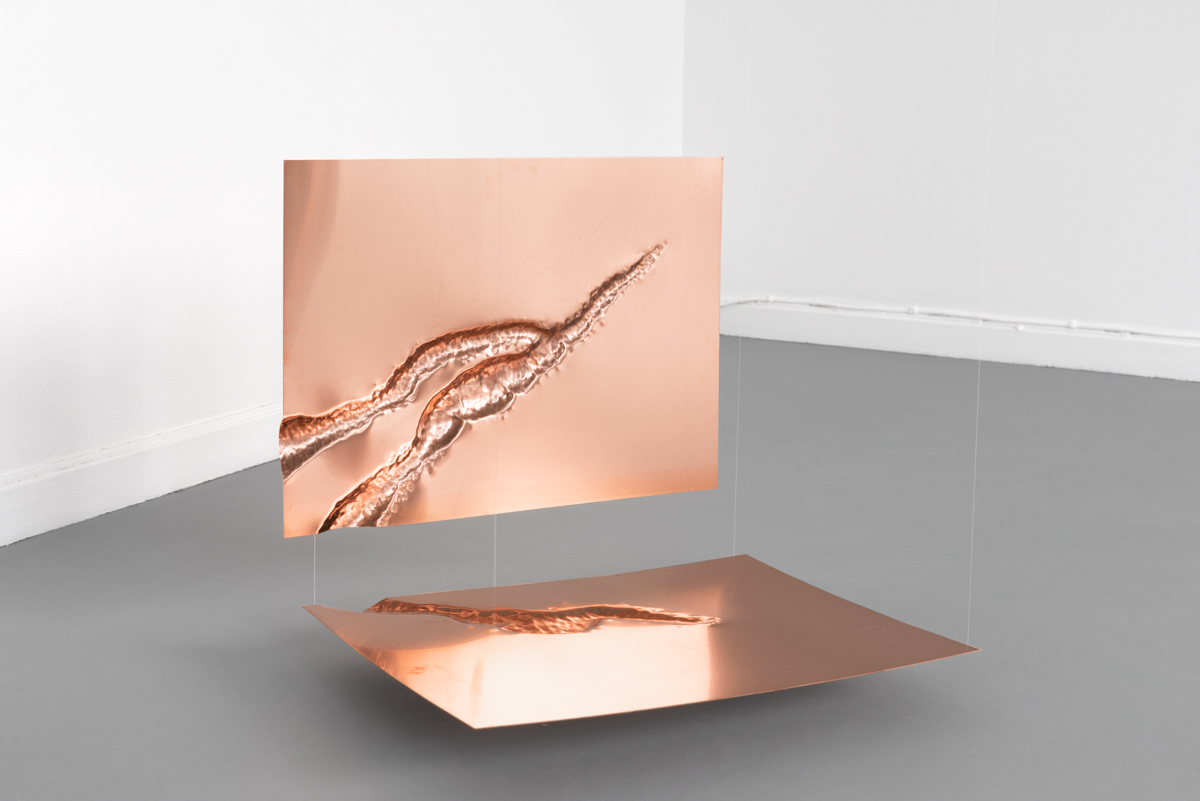 Petra Dalström’s practice revolves around observing the functional and sensuous qualities of materials that surround us. For the exhibition at BABEL, she has made sculptural interpretations of the specific properties of soft metals and soft stone. These materials are often perceived as seemingly hard and unworkable, but when actually engaging with them, that assumption might be challenged. The line of work has sprung out from a longer research around Scandinavian copper mining and the historical use of soapstone.