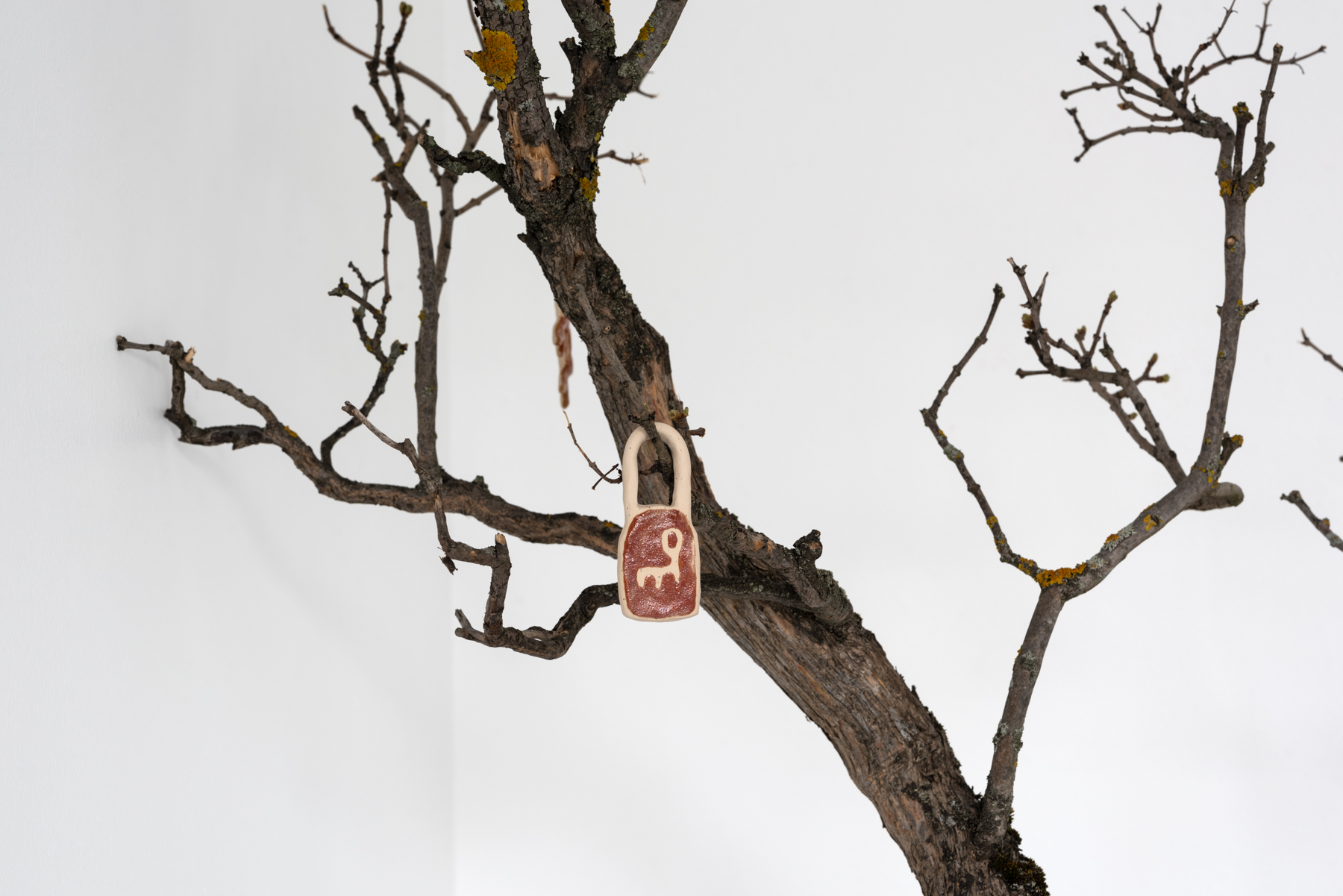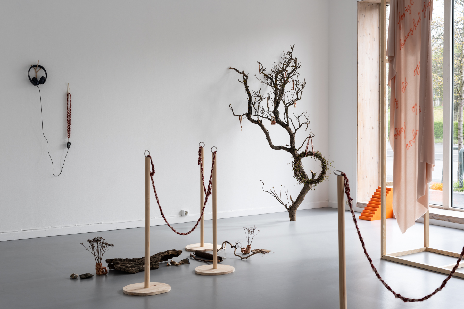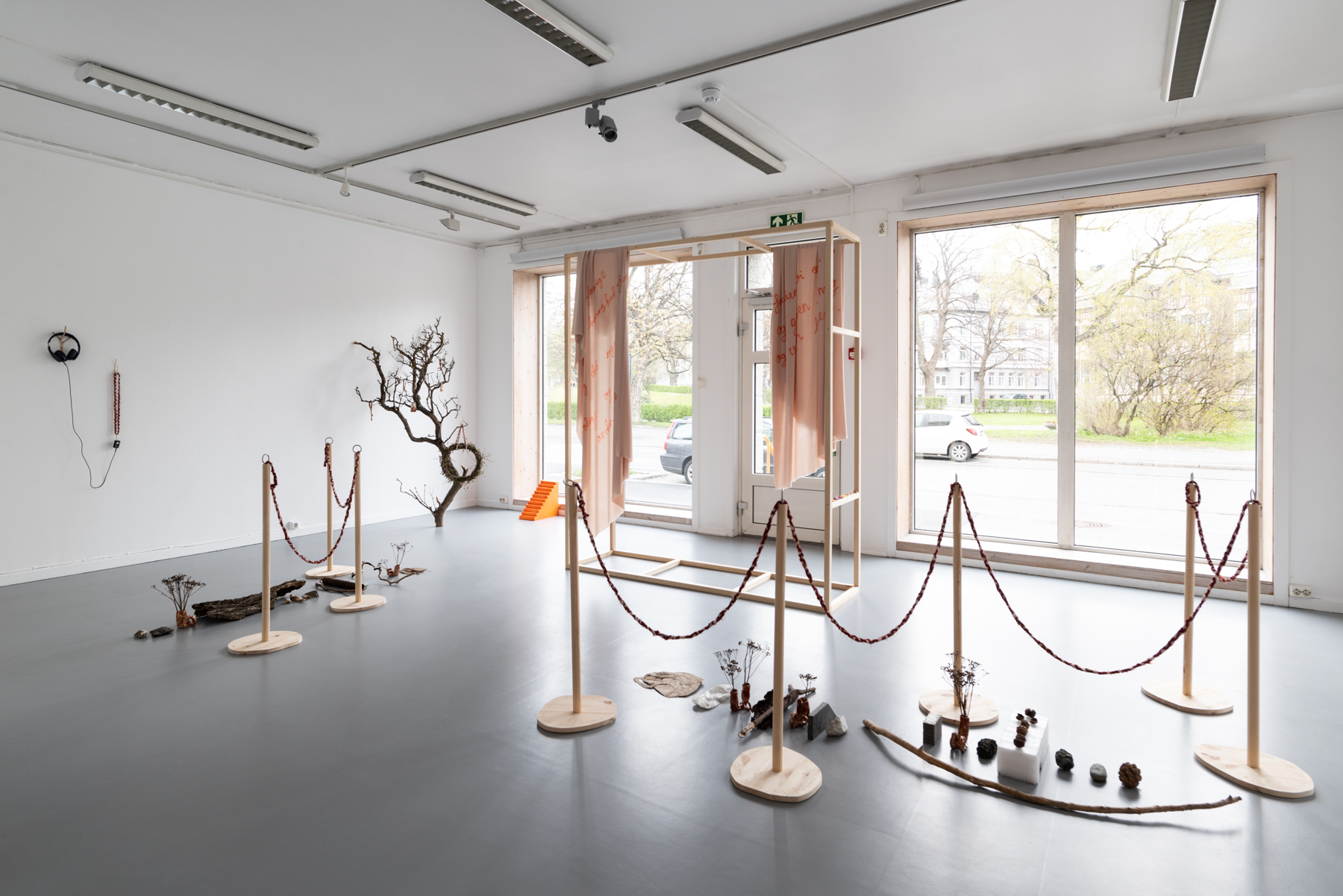 Karoline Sætre (b. 1992) was born and raised in Trysil, where she recently bought a small, older farm together with her colleague and cohabitant Øyvind Novak Jenssen. She has a BA from the Trondheim Academy of Fine Art (2016) and an MA from Malmö Academy of the Arts (2019). She also has a year from the Author studies in Tromsø (Kunstakademiet, UIT: 2016-17) and has taken courses in library subjects. Her works take the form of installations consisting of several techniques and media, often put in relation to found objects from specific locations. Recent works have consisted of textiles, wood and clay and her current and ongoing interests are boundaries, distance, relationship, and connection.