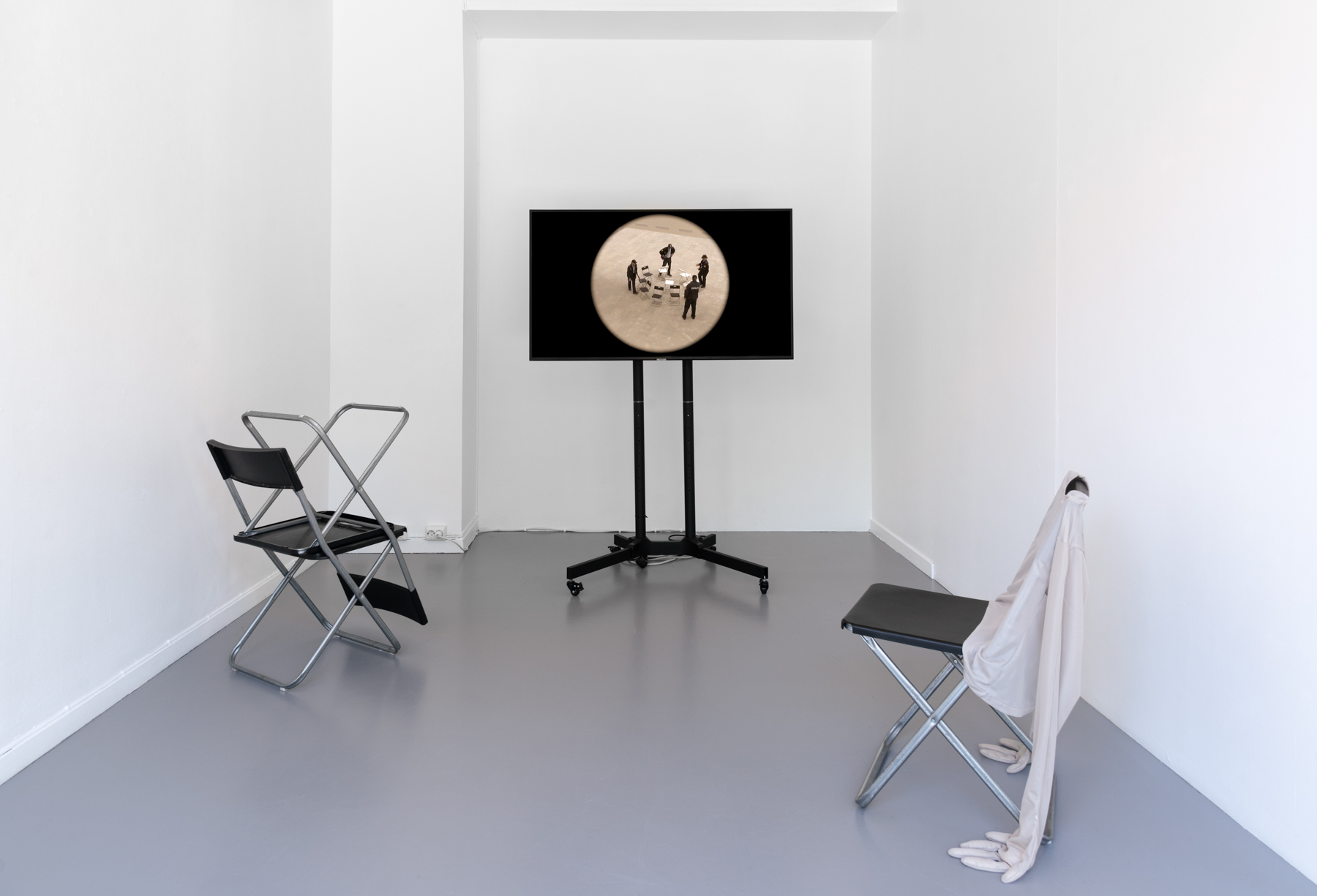 Through video installation, photography and sculpture THE CHAIRS looks to investigate patterns of social behavior and the political subtext of everyday life. Several works in the exhibition are informed by psychodrama; a form of group therapy that uses elements of theater, spontaneity and the exploration of emotions and behavioral patterns through roleplay. The staging of the relationship between objects, conditions and human beings unfolds in works where the connection between individual and interpersonal relations are explored.