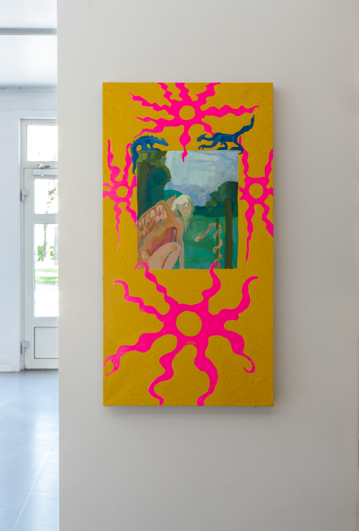 Vilde Rudjord (b. 1995, Norway) works with painting and installation. With a playful colour palette, she explores allegories, embraces the grotesque or goes looking for lost times. Rudjord holds a MFA (2022) and BFA (2020) from the Trondheim Academy of Fine Art. This exhibit at Babel is her biggest solo show to date. Rudjord has previously exhibited at Kjøpmannsgata Ung Kunst, Nils Aas kunstnerverksteder, Galleri KiT, Galleri Blunk, Trondheim Kunstmuseum Gråmølna, Mikrogalleri Nor, EKA Art Academy, Academy of Fine Arts Münster, Bilhuset and Galleri Vekta.
